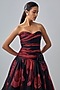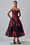 Featuring a red and black maxi dress in cinepolis fabric and polyester base. Accentuate it with dangler earrings and heels, perfect for evening soirees.