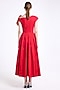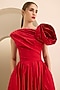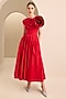 Featuring a red draped midi dress in cotton base with asymmetric neck and floral detail. Style it with hoop earrings and block heels for evening wear or cocktail party.