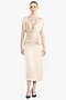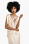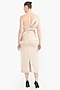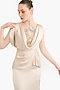 Gauri and Nainika features a sea mist draped pencil dress in satin base with a cowl neckline and crystal embellishments. Style it with bold earrings, metallic heels and a statement clutch for a striking look, perfect for parties or night events.