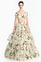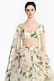 White Silk Organza Rose Printed Tiered Lehenga Set