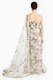 Featuring a white pre-stitched saree in tulle base with rose print and an attached embroidered corset. Style with polki jewellery, soft curls, and embellished heels for weddings, engagements, or festive events.