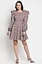 Featuring a multi-coloured mini dress in cotton satin base with puffed sleeves and diamond print.
