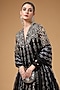 Featuring a black jacket style anarkali in silk crepe base with print and hand embroidery. It is paired with palazzo pants and an organza dupatta. Accentuate it with statement jewellery and heels for a festive look.