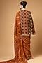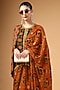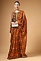 Brown Organza Printed Pre-Draped Saree Set