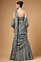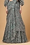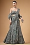 Featuring a green draped lehenga saree in organza base with print. It is paired with an off-shoulder blouse. Accentuate it with statement jewellery, block heels and a bag for weddings, engagement or sangeet ceremonies.
