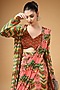 Featuring a multi-colored pre-draped saree in silk crepe base with print. It is paired with a blouse having cut-sleeves and a long jacket. Accentuate it with statement jewellery, block heels and a bag for weddings, engagement or sangeet ceremonies.