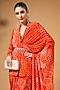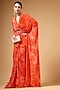 Orange Silk Crepe Printed Pre-Draped Saree Set