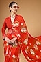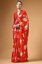 Red Silk Crepe Floral Printed Pre-Draped Saree Set