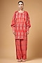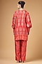 Featuring a red kaftan in silk crepe base with print. It is paired with pants. Accentuate it with statement jewellery and heels for festive occasions or wedding ceremony.