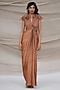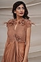 Featuring a bronze draped gown in silk chiffon and crochet base with embellishment. Accentuate it with statement jewellery and heels for a wedding, sangeet or engagement ceremony.