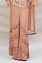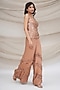 Featuring a bronze jacket in modal silk and silk organza base with hand embroidery. It is paired with a camisole and wide-legged trousers. Accentuate it with statement earrings and heels for an evening look.
