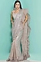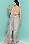 Featuring a steel grey draped saree in viscose crepe and organza base with sequins embroidery. It is paired with a blouse. Accentuate it with statement jewellery and heels for a festive occasion, wedding, sangeet or engagement ceremony.