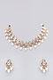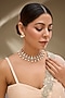 Featuring a rose gold finish choker necklace studded with kundan polki and AD stone, set in brass. It is paired with a matching pair of earrings. Perfect choice for weddings, parties and for other Indian festivities.