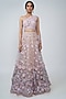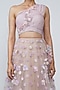 Featuring a blush pink ruched blouse in nylon base. It is paired with a matching polyester net lehenga having appliques flowers.