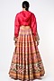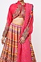 Featuring a fuchsia lehenga in viscose, silk, and kasab linen base with zardosi embroidery, floral and geometric patterns. It is paired with a matching blouse, jacket and a dupatta.