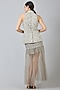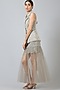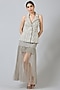 Featuring a grey jacket in nylon and rayon base. It is paired with a matching aari embroidered skirt.