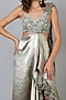 Featuring a grey and silver gown in viscose and polyester base with a flowy drape and zardosi embroidery.