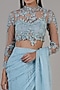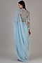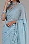 Featuring a light blue saree in polyester base. It is paired with a viscose and polyester blouse having floral applique embroidery, including a viscose underskirt. Accentuate it with statement jewellery and heels for any special occasion.