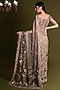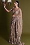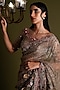 Featuring an off-white saree in silk and viscose base with sequins details, floral motifs and 3D embroidered flowers. It is paired with a blouse and an underskirt. Accentuate it with statement jewellery and heels for festive occasions.