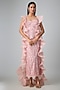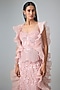 Featuring a pink structured top in nylon base with weaving details. It is paired with a skirt and a ruffled stole. Accentuate it with statement jewellery, a color-coordinated clutch and nude heels for a striking look, perfect wear for sangeet nights, cocktail parties or glamorous gala events.
