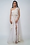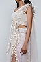 Featuring a purple skirt saree in nylon organza, net, and rayon base with frills. It is paired with a matching ruched blouse.
