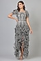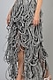 Featuring a silver and black cocktail gown in polyester, nylon, and viscose base with a braided structure.