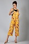 Featuring a yellow jumpsuit in polyester base with floral detailing.