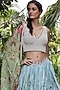 Featuring a sky blue blue lehenga in viscose base with floral print. It is paired with a contrasting white beads embroidered blouse and a dupatta.
