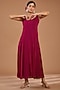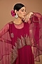 Plum Red Georgette & Net Embellished Layered Cape Dress
