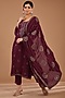 Featuring a wine kurta in silk base with sequins and threadwork. It is paired with silk pants and a chinon chiffon dupatta. Accentuate with statement jewellery and heels for a wedding ceremony or festive occasions.