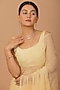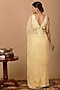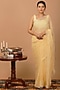 Featuring a beige pre-draped saree in chiffon base with jaal work and sequins embellishment. It is paired with a stitched crepe blouse. Accentuate it with statement jewellery or heels for weddings or sangeet ceremonies.