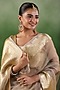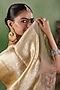 Featuring a beige saree in crushed tissue base with zari border. It is paired with a blouse piece. Accentuate with statement earrings and heels for a festive occasion.