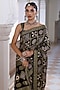 Featuring a black saree in modal silk base with ajrakh print and zari checks pattern. It is paired with an unstitched blouse fabric. Accentuate it with oxidised jewellery, a statement clutch bag and block heels for festive occasions, wedding or sangeet ceremony.