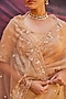 Featuring a champagne gold pre-draped saree in tissue base with embroidery. It is paired with a stitched blouse. Accentuate it with statement jewellery or heels for weddings or sangeet ceremonies.