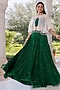 Featuring a green lehenga in chiffon base. It is paired with a crepe blouse having sequins and aari work, including a muskaish shimmer cape. Accentuate it with statement jewellery, a potli bag and block heels for wedding, mehendi or sangeet ceremony.