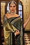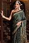 Featuring a green saree in modal silk base with ajrakh print, sequins and aari work. It is paired with an unstitched blouse fabric. Accentuate it with oxidised jewellery, a statement clutch bag and block heels for festive occasions, wedding or sangeet ceremony.
