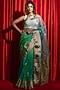 Featuring a green shaded saree in organza banarasi base with woven zari, floral thread and lace embellishments. It is paired with an embroidered unstitched blouse piece. Accentuate with statement jewellery and heels for a festive occasion or sangeet ceremony.