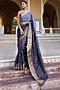 Featuring a grey shaded banarasi saree in dola silk base with sequins, gota patti, tube jaal, and tassels hand embroidery, including zari woven details. It is paired with a grey silk unstitched blouse piece. Style it with statement jewellery and heels for festive occasions.