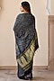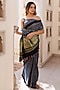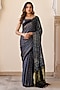 Featuring an indigo blue saree in modal silk base with hand block ajrakh print and zari detailing. It is paired with an unstitched blouse fabric. Accentuate it with oxidised jewellery, a statement clutch bag and block heels for festive occasions, wedding or sangeet ceremony.