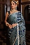 Featuring an indigo blue saree in modal silk base with ajrakh print, sequins and aari work. It is paired with an unstitched blouse fabric. Accentuate it with oxidised jewellery, a statement clutch bag and block heels for festive occasions, wedding or sangeet ceremony.