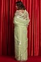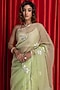 Featuring a light green saree in organza base with gota patti hand embroidery. It is paired with a light green organza unstitched blouse. Accentuate with statement jewellery and heels for a festive occasion or mehendi ceremony.