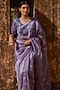 Featuring a lilac pre-draped saree in tissue base with embroidery. It is paired with a stitched blouse. Accentuate it with statement jewellery or heels for weddings or sangeet ceremonies.