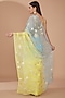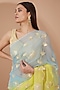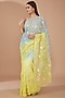 Featuring a lime yellow and grey handcrafted saree in chiffon base with gota patti work. It is paired with an unstitched blouse. Accentuate it with statement jewellery and heels for weddings.