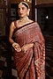 Featuring a maroon and black scalloped saree in modal silk base with ajrakh print, sequins and aari work. It is paired with an unstitched blouse fabric. Accentuate it with oxidised jewellery, a statement clutch bag and block heels for festive occasions, wedding or sangeet ceremony.