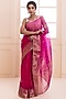 Featuring an onion pink saree in organza banarasi base with woven zari and pitta embellishments. It is paired with a crepe embroidered unstitched blouse piece. Accentuate with statement jewellery and heels for a festive occasion.