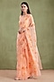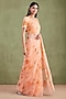 Featuring an orange saree in chiffon base with floral hand paint and mukaish embellishments. It is paired with a jacquard hand painted blouse and an underskirt. Accentuate it with dangler earrings and heels for festive gatherings, cultural events or pooja ceremony.