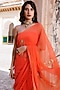 Featuring an orange saree in chiffon base with aari hand embroidery. It is paired with an orange crepe unstitched blouse piece. Accentuate with statement jewellery and heels for a festive occasion.