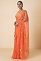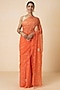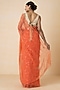 Featuring a peach pre-draped saree in chiffon base with aari work. It is paired with a stitched crepe blouse. Accentuate it with statement jewellery or heels for weddings or sangeet ceremonies.