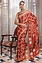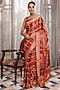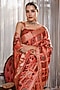 Featuring a peach saree in modal silk base with hand block motif print and zari checks detailing. It is paired with an unstitched blouse fabric. Accentuate it with oxidised jewellery, a statement clutch bag and block heels for festive occasions, wedding or sangeet ceremony.