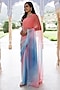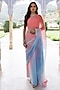 Pink & Blue Shaded Chiffon Mukaish Hand Embroidered Saree Set